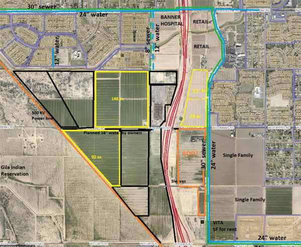 14.47 +- acres for sale. Corner property. 202 frontage, 59th Ave frontage - great visibility. Zoned C-2 / CP Commerce Park. Adjacent 37 acres sold to Multi Family Uses (580 units planned). Exclusively offered. Call for pricing.
