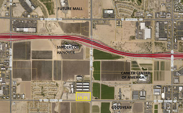 Signalized intersection. In the heart of the Goodyear Employment Corridor.