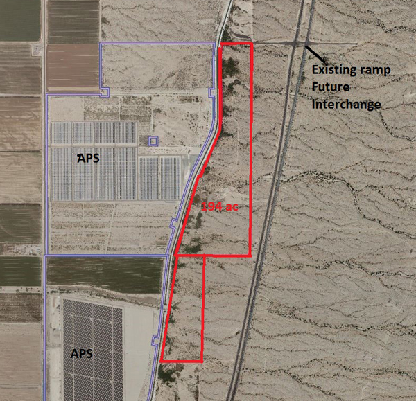 Solar farms adjacent. Visibility from SR 85. Part of Master planned Community. Access established from SR 85 to site.